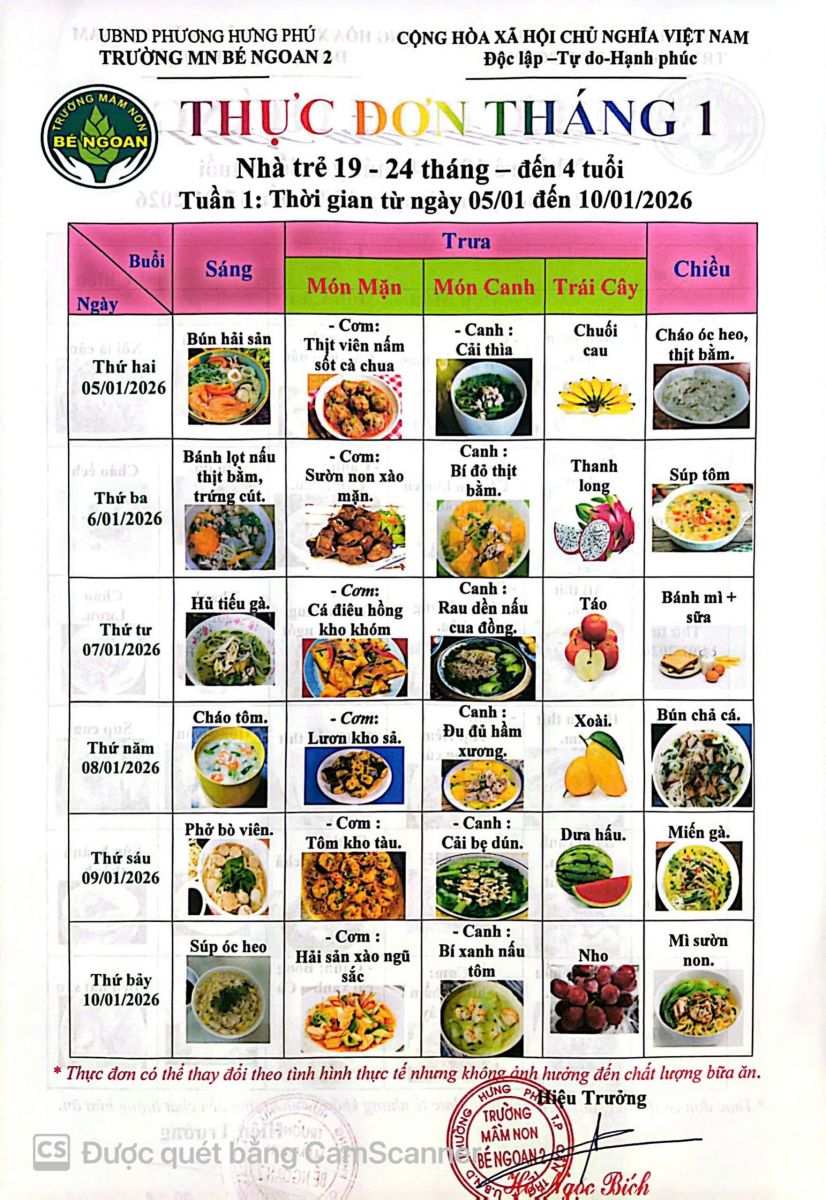 Việc xây dựng thực đơn cho trẻ mầm non đóng vai trò quan trọng cho sự phát triển và đáp ứng đủ nhu cầu dinh dưỡng của trẻ. Xin mời Qúy Phụ huynh cùng xem qua THỰC ĐƠN THÁNG 1 LỚP LÁ 5 TUỔI