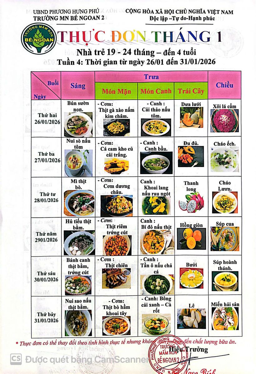 THỰC ĐƠN THÁNG 1 NT 19-24 THÁNG - ĐẾN 4 TUỔI