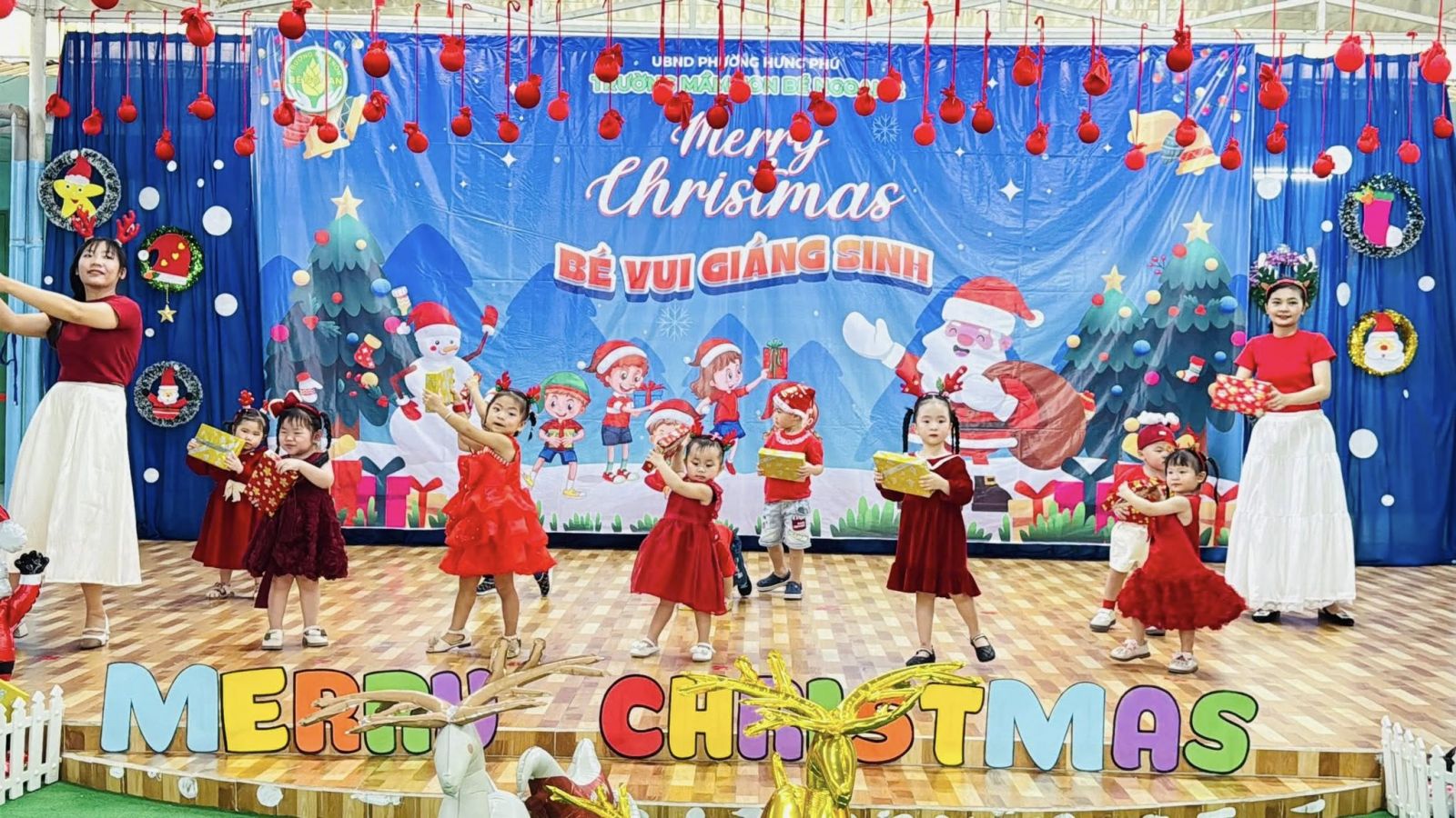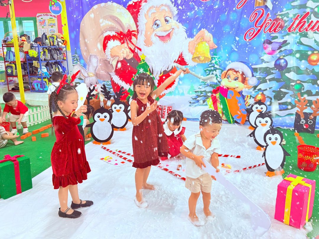 Trong không khí se lạnh của những ngày cuối năm, trường mầm non Bé Ngoan 2 đã tổ chức chương trình “Giáng sinh yêu thương” dành cho các bé với nhiều hoạt động vui tươi, ý nghĩa và tràn đầy cảm xúc. Sân trường được trang trí lung linh với cây thông Noel, ông già Noel, những hộp quà xinh xắn và sắc đỏ – xanh đặc trưng của mùa Giáng sinh, tạo nên một không gian ấm áp và rộn ràng. Các bé được tham gia vào nhiều hoạt động hấp dẫn như múa hát các bài hát Giáng sinh, giao lưu cùng ông già Noel, nhận những món quà dễ thương và cùng nhau chụp những bức ảnh kỷ niệm thật đáng yêu.
