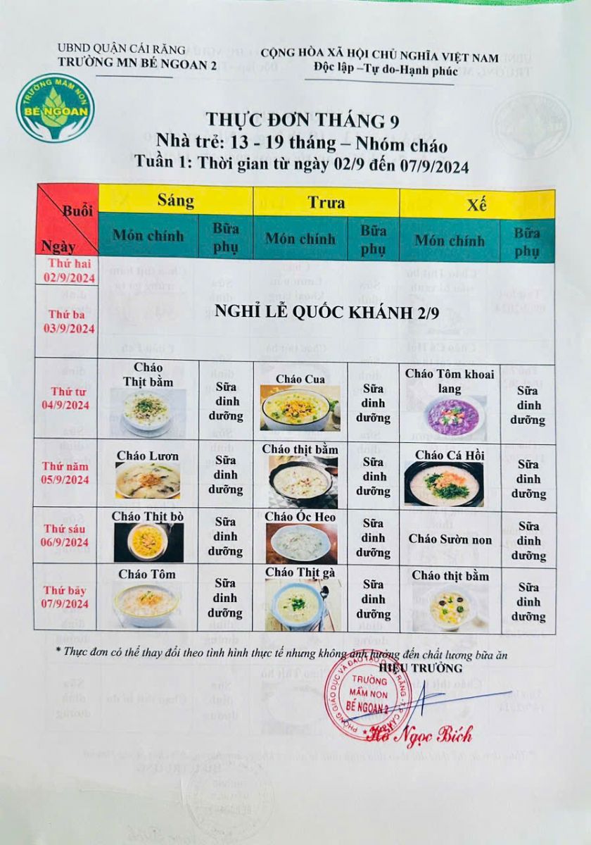 THỰC ĐƠN THÁNG 10 NT 13-18 THÁNG - Nhóm Cháo