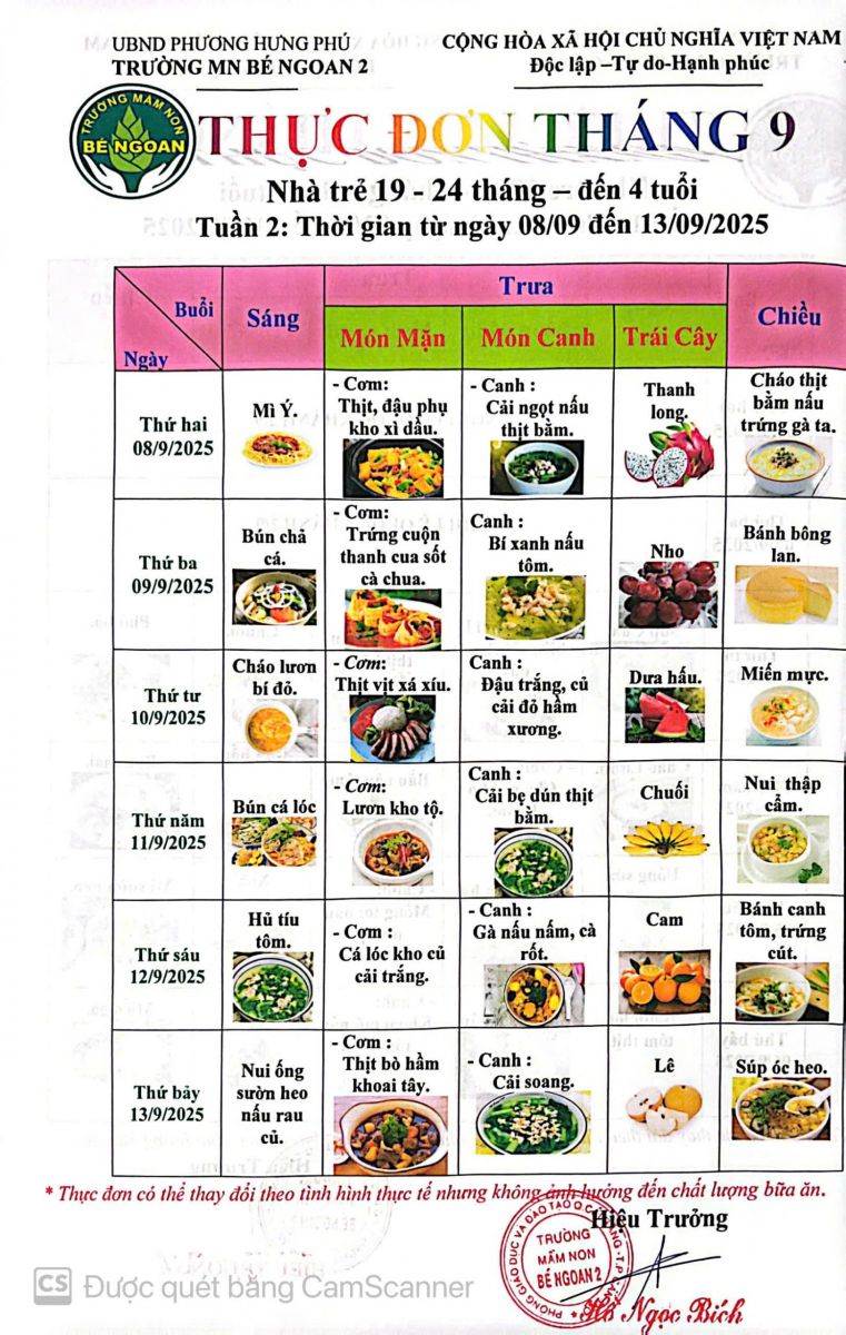 THỰC ĐƠN THÁNG 10 NT 13-18 THÁNG - Nhóm Cháo