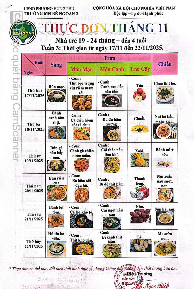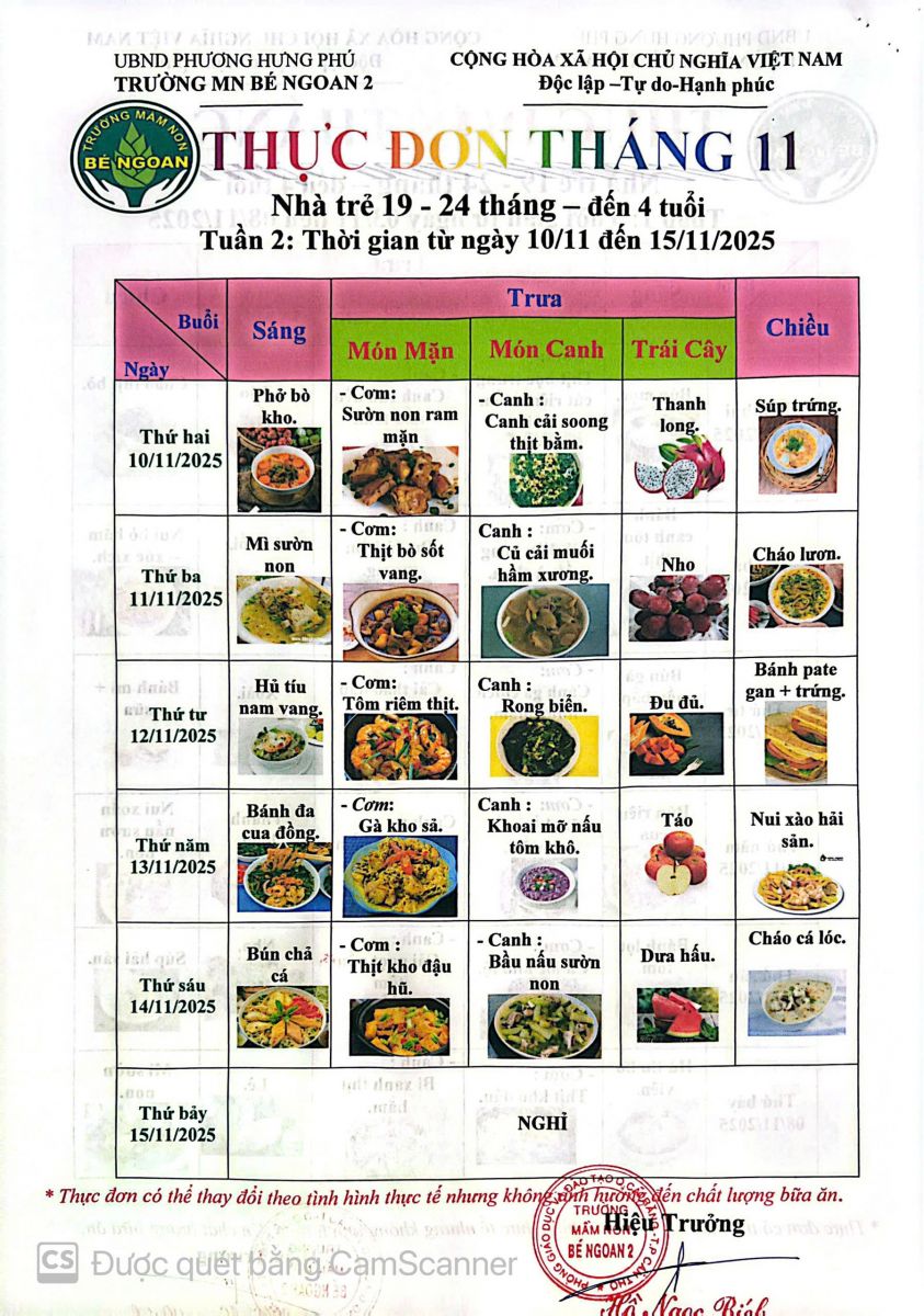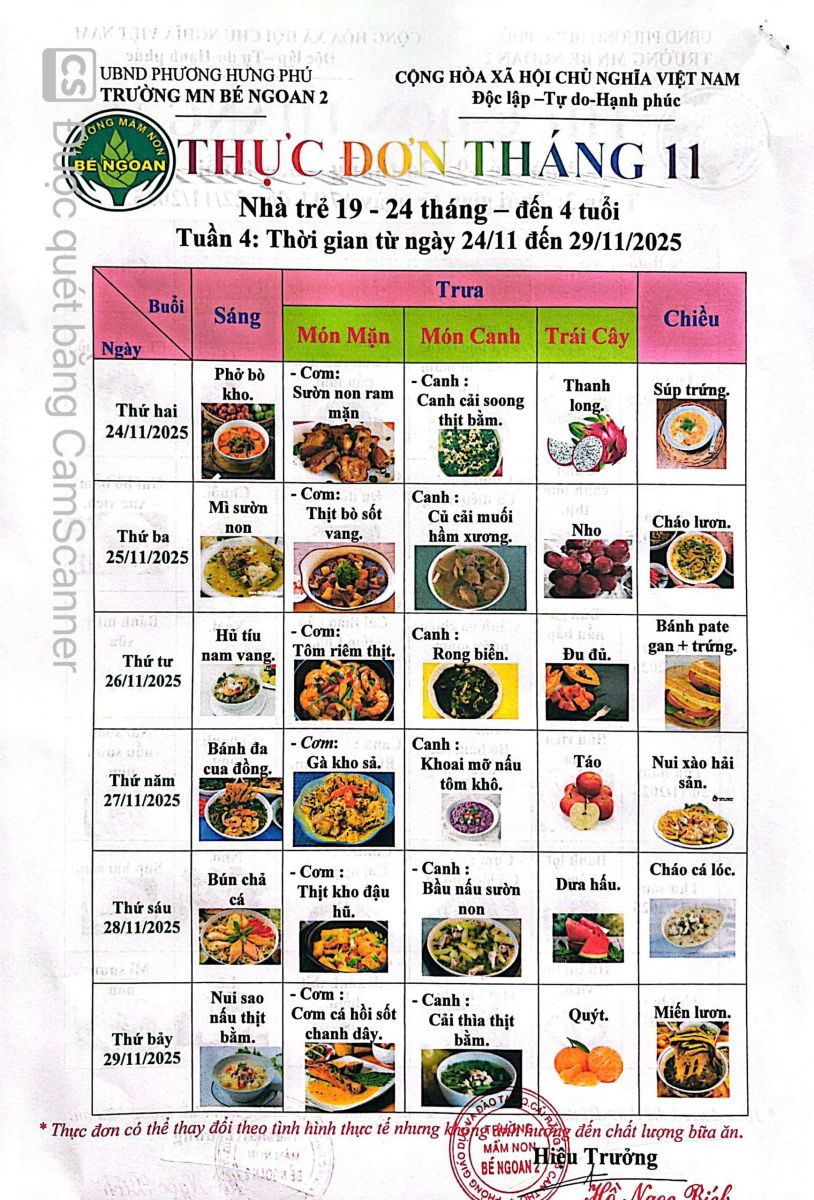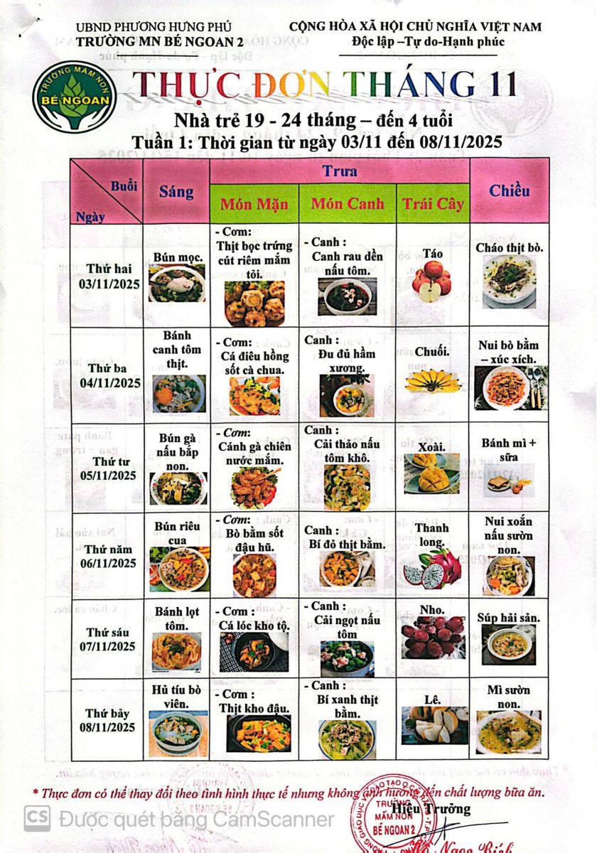 THỰC ĐƠN THÁNG 11 NT 19-24 THÁNG - ĐẾN 4 TUỔI