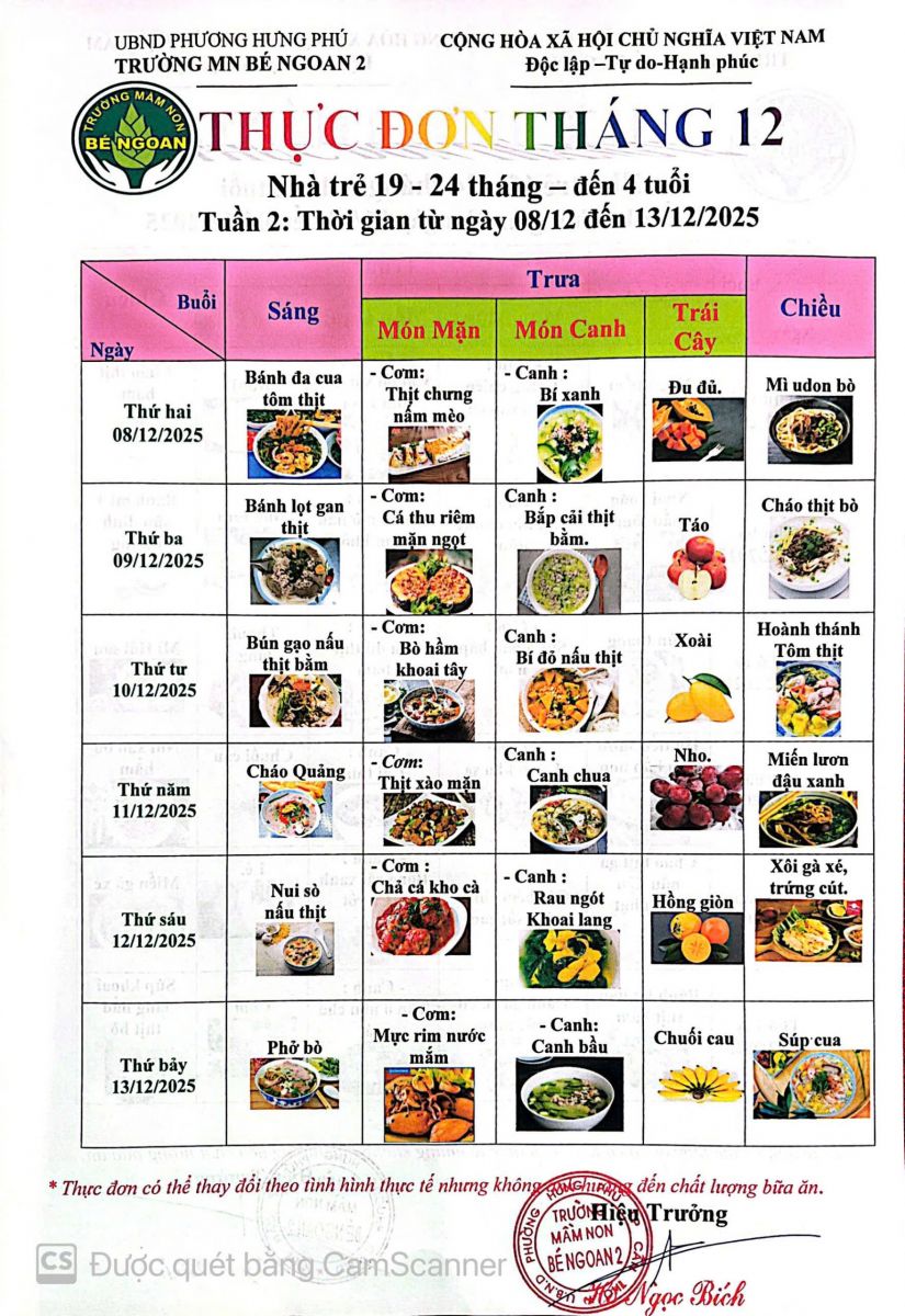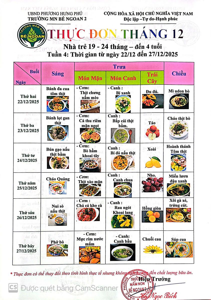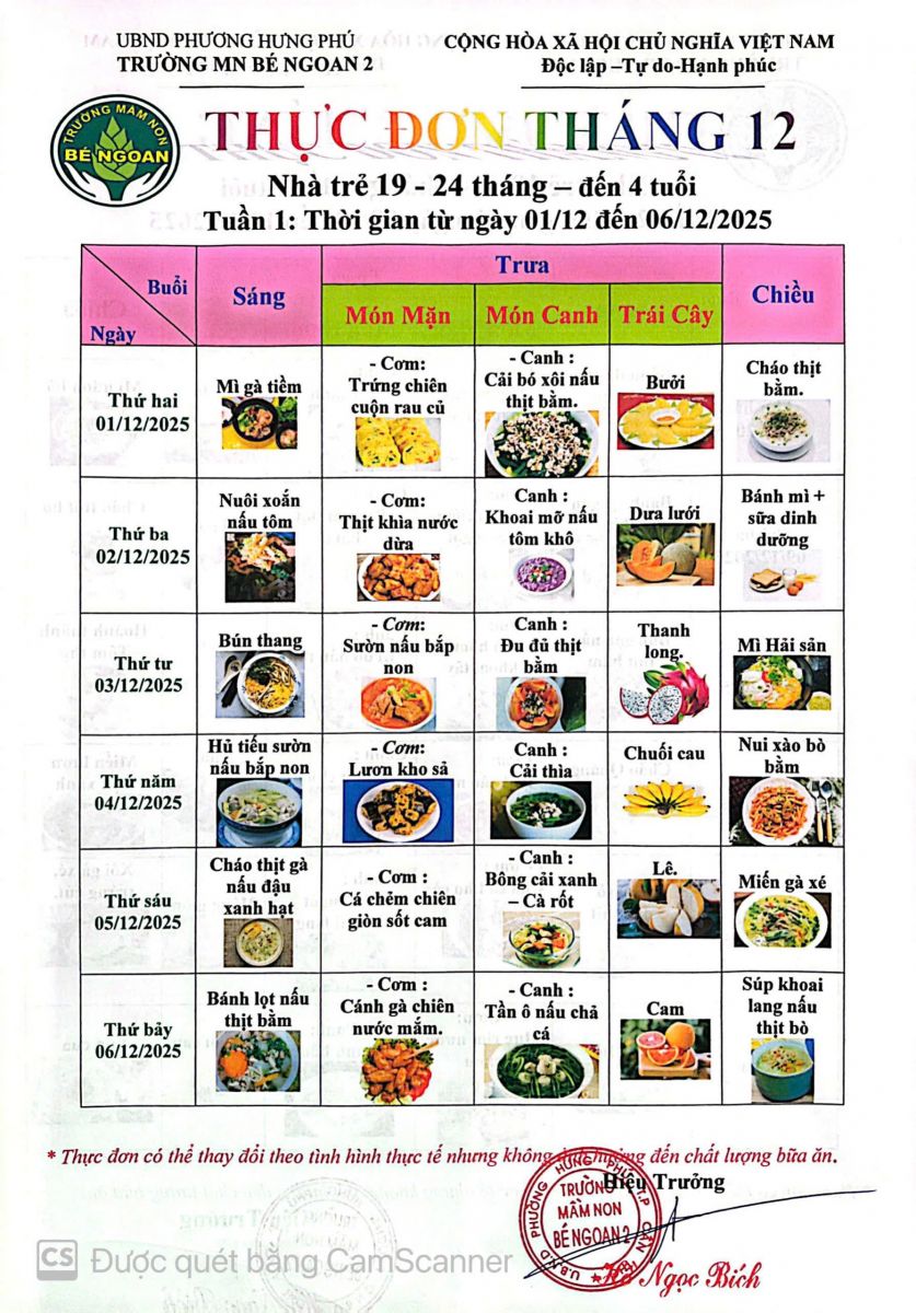 THỰC ĐƠN THÁNG 9 LỚP LÁ 5 TUỔI