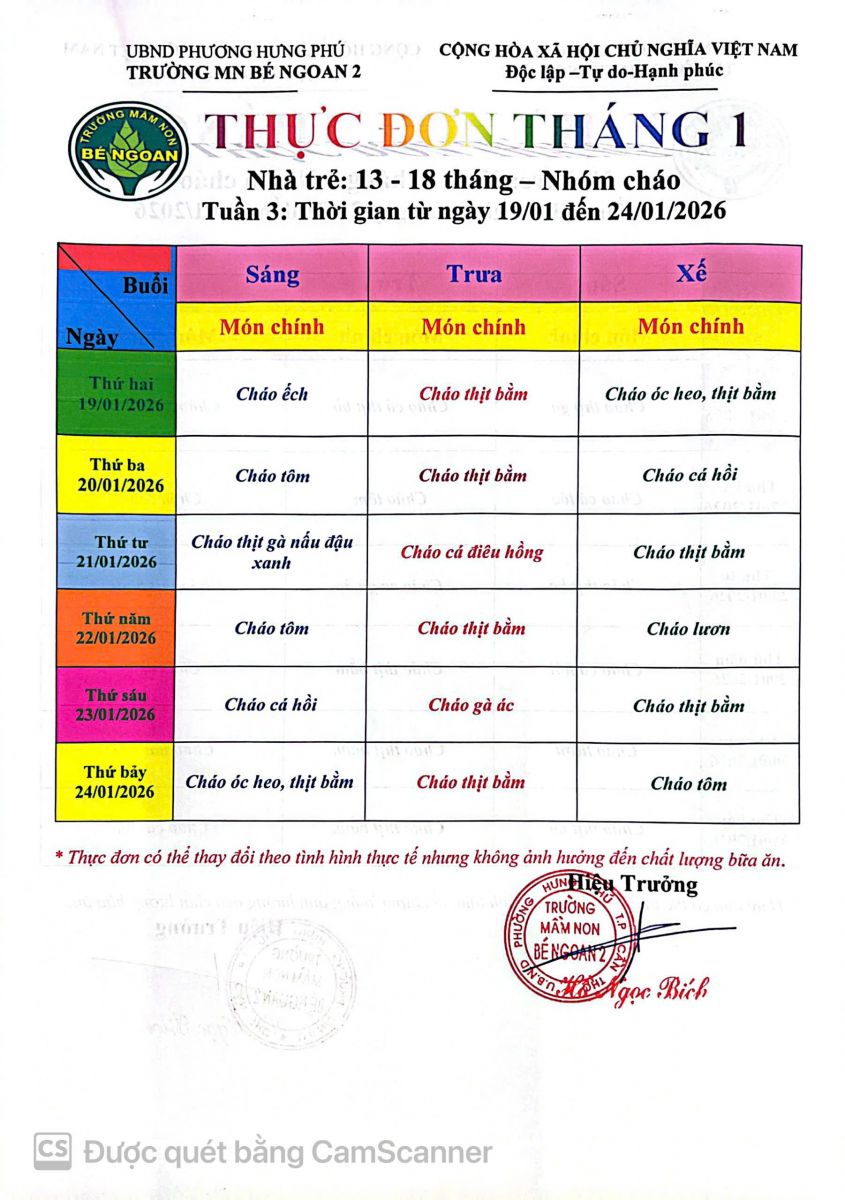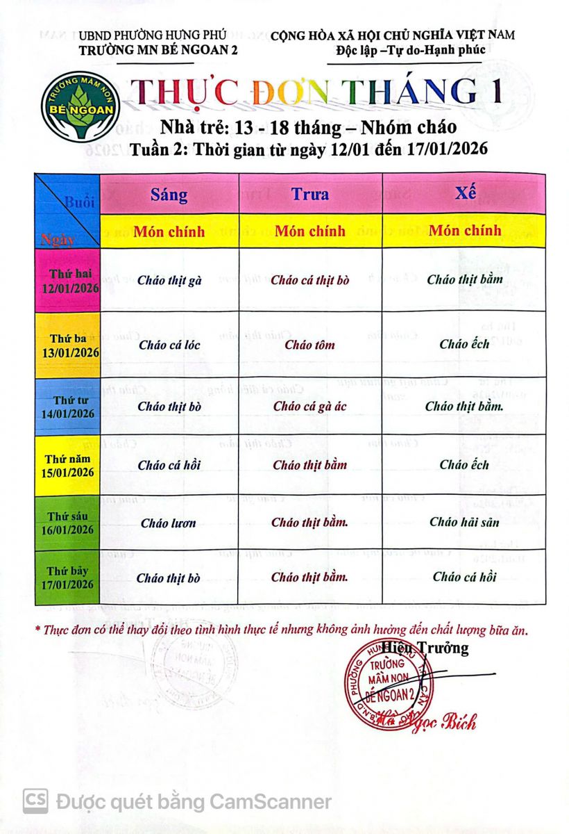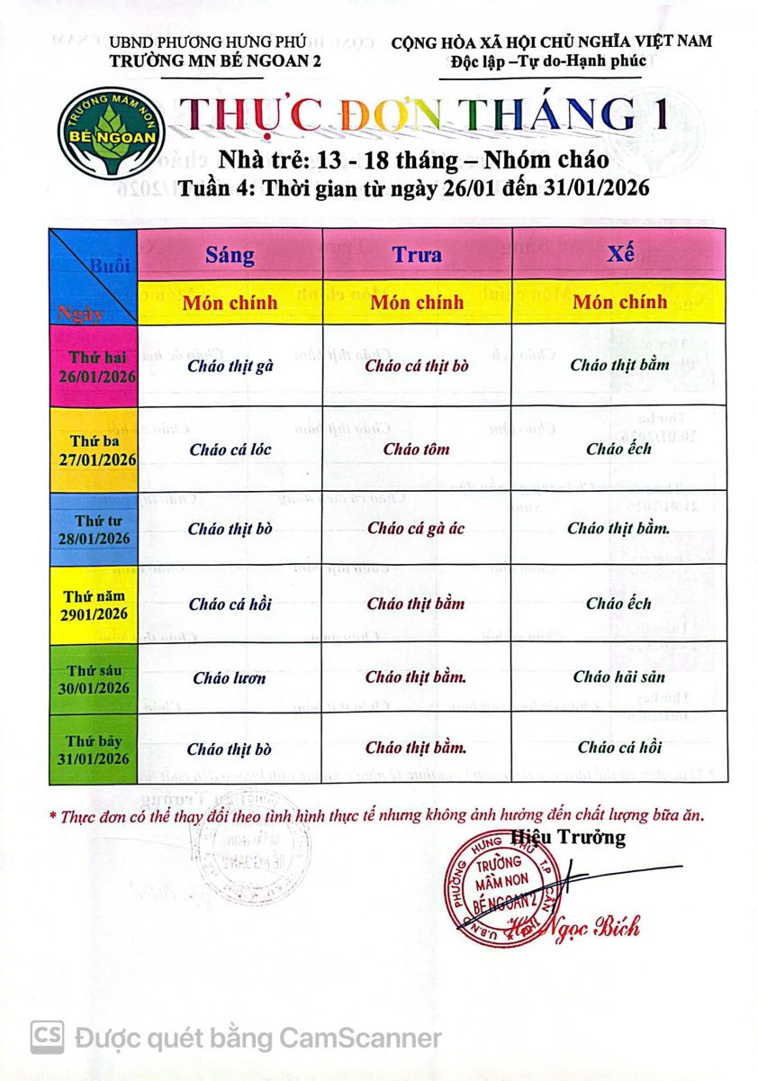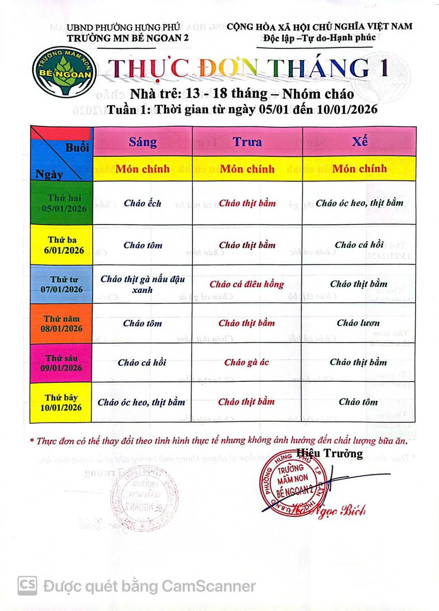 THỰC ĐƠN THÁNG 9 LỚP LÁ 5 TUỔI