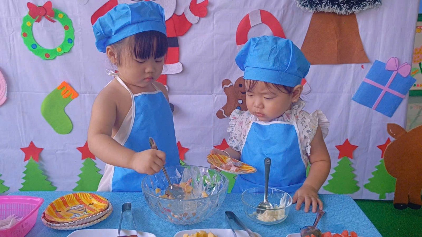 Chăm sóc và đồng hành cùng các bé mỗi ngày là cô Hồng Tuyết và cô Ngọc Lan – hai cô giáo hiền hòa, tận tụy và luôn dành cho trẻ sự quan tâm ân cần. Từ việc hướng dẫn các con tập ăn, tập ngủ đúng giờ đến việc dỗ dành, khích lệ trẻ trong các hoạt động vui chơi, các cô luôn chú trọng tạo cho bé cảm giác thân quen như ở nhà. Thông qua các trò chơi đơn giản, vận động nhẹ và hoạt động cảm nhận, các bé dần phát triển thể chất, cảm xúc và khả năng giao tiếp.